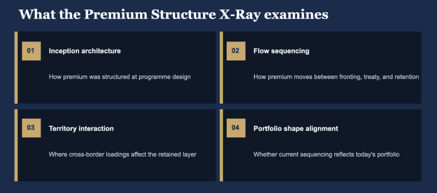 This diagnostic helps identify where non-risk premium economics may introduce complexity, reconciliation effort, or audit risk once risk pricing is set. It is designed for organisations managing multi-jurisdiction insurance or risk financing programmes.